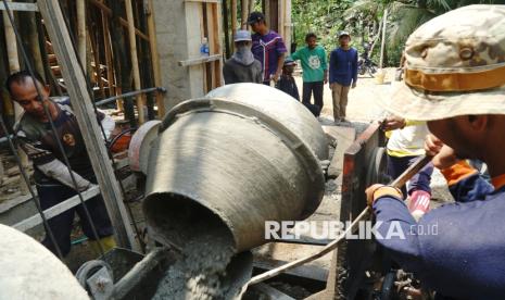 Pekerja menyelesaikan pembangunan gedung baru untuk 36 kelas madrasah di dalam kompleks Pondok Pesantren Tremas, Pacitan, Jawa Timur, Jumat (10/10/2025). KemenPU berencana memberikan pembekalan dan pelatihan dasar ilmu teknik sipil kepada santri-santri pondok pesantren agar memiliki kapasitas dan kompetensi saat dilibatkan dalam pembangunan pondok pesantren tempat mereka menimba ilmu keagamaan. (FOTO : ANTARA FOTO/Destyan Sujarwoko)